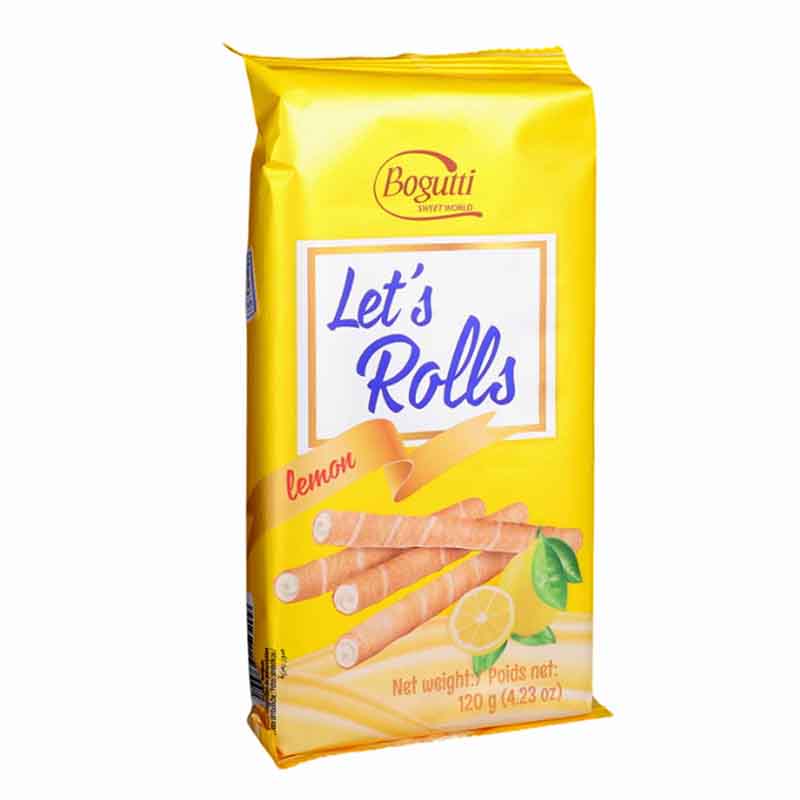 Bogutti Let’s Rolls Lemon 120g – Crispy Wafer Rolls Filled with Zesty Lemon Cream | Delicious Snack Treat