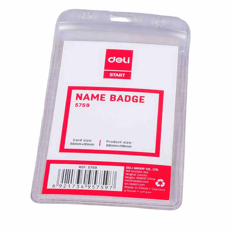 In summary, the DELI E5759 PVC Name Badge Vertical stands out as a high-quality, long-lasting, and affordable solution for displaying and protecting professional identification cards. From offices to events and schools, it provides a clean, transparent, and secure badge display option suitable for a wide range of users. Its durable construction ensures that your ID remains protected and clearly visible at all times — a crucial factor in maintaining security, professionalism, and smooth operations in any environment.