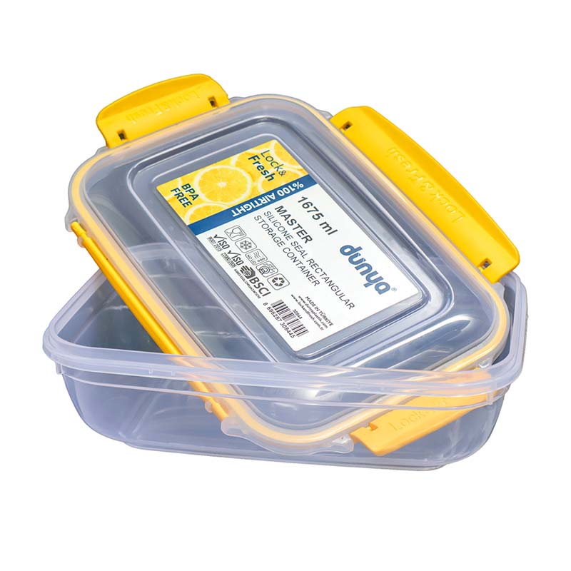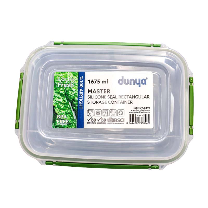 The DUNYA 1675ML Storage Container #30844 is a durable, BPA-free, airtight food storage box designed to keep dry and fresh foods organized and protected. Ideal for kitchens, pantries, and refrigerators.