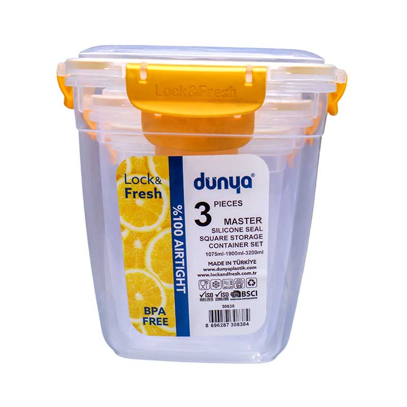 Organize your kitchen effortlessly with the DUNYA 3PC Storage Containers Set #30838. Durable, airtight, and stylish, perfect for pantry staples, snacks, and dry foods.