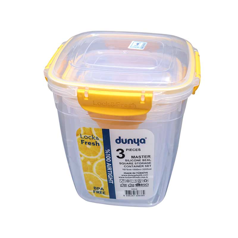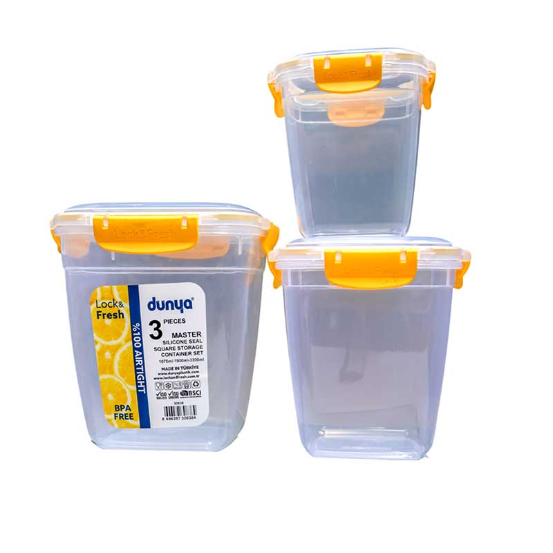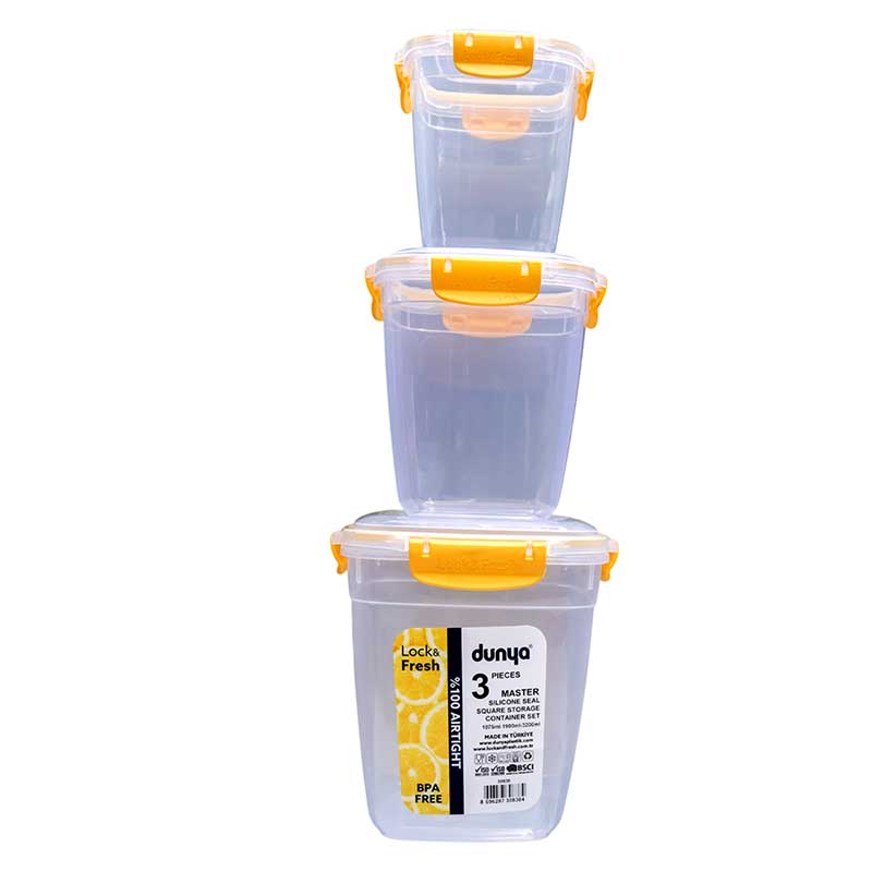 The DUNYA 3PC storage containers are crafted from high-quality, food-grade materials, ensuring your food stays safe and free from contamination. Each container in the set is thoughtfully sized for versatile use, whether you need to store large quantities or small essentials. The airtight lids prevent spills and keep unwanted moisture out, making these containers perfect for pantry storage, refrigerator organization, or even for carrying snacks on the go.